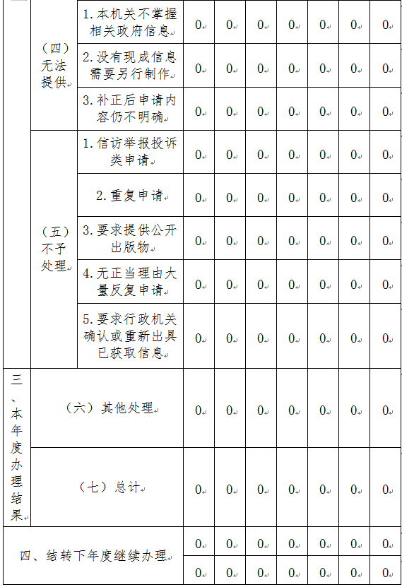 3.加强政府信息管理。认真履行公开责任。按照“应公开、尽公开,公开为常态、不公开为例外”原则,在公开时限内公开政府文件和相关信息。2020年更新组织机构镇党委、政府机构职能、乡镇内设机构各1条,依法主动公开政府文件12个。全年没有接收到受理政府信息公开申请,无无法提供、不予处理的情况。