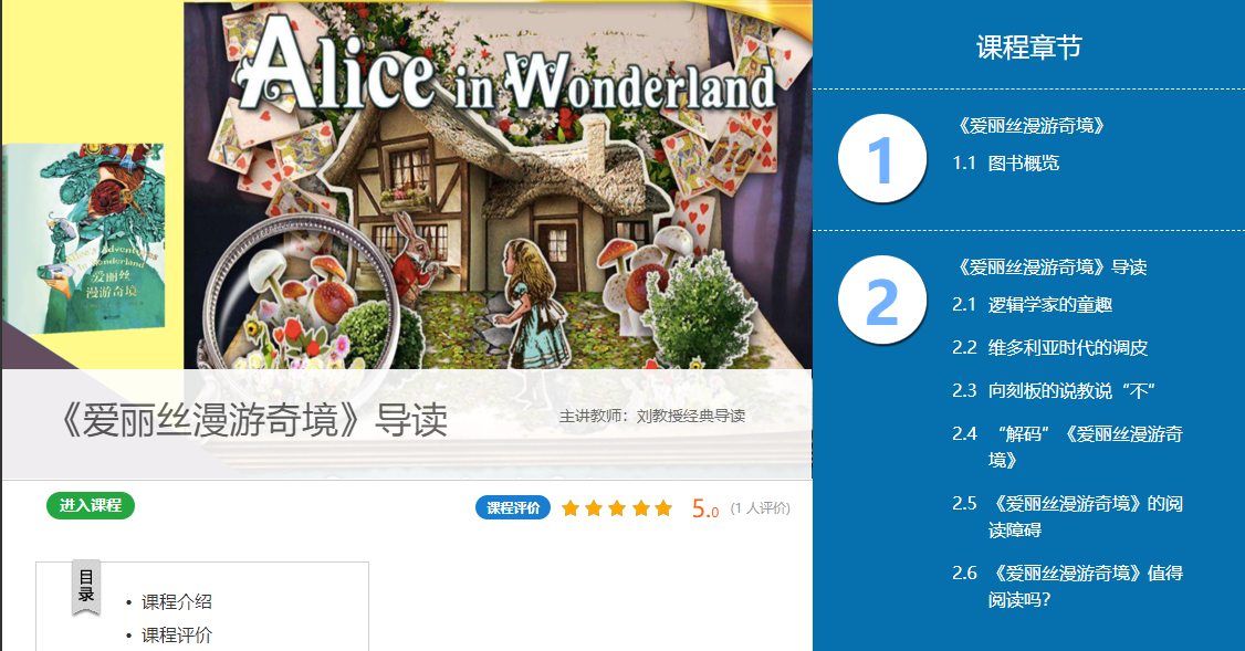 活动精选刘教授经典导读课程——《爱丽丝漫游奇境》阅读课,家长可进入“家长阅读”板块,阅读图书、观看“名师导读视频”,共同品味经典,感悟童书魅力,在阅读中重新理解自己,和孩子一起获得成长。