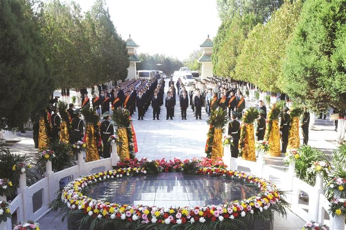 青山埋忠骨,山河念忠魂。9月30日上午,吕梁各界向烈士敬献花篮仪式在离石区烈士陵园隆重举行。市委书记孙大军代表全体人员向烈士纪念碑敬献花篮。市委副书记、市长熊义志,市人大常委会主任刘振国,市政协主席乔晓峰,市、区两级四大班子其他领导,驻离石城区各部队首长,市、区两级有关单位和各人民团体主要负责同志,驻离部队官兵、公安干警、各民主党派及无党派人士代表,退伍老战士及军烈属、优秀退役军人代表和学生代表参加。离石区委书记廉海平主持公祭仪式。