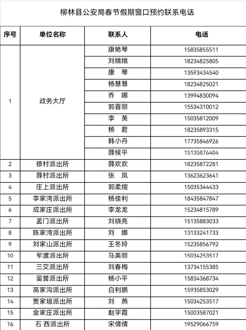 新春佳节来临之际,柳林县公安局坚持以“人民为中心”服务理念,围绕停车、户政、交管等问题,春节假期(1月28日至2月4日)推出便民服务十项举措,为广大群众送上新春美好祝福。