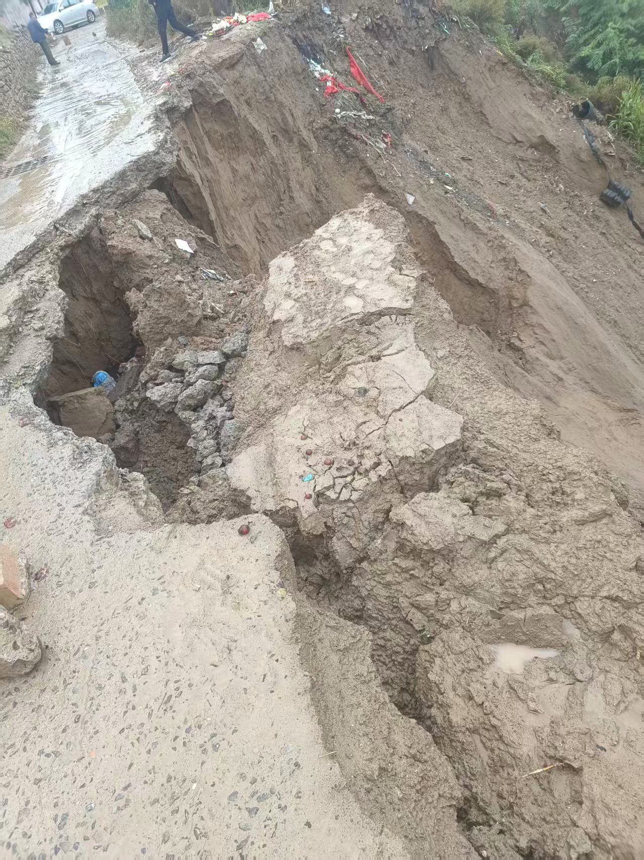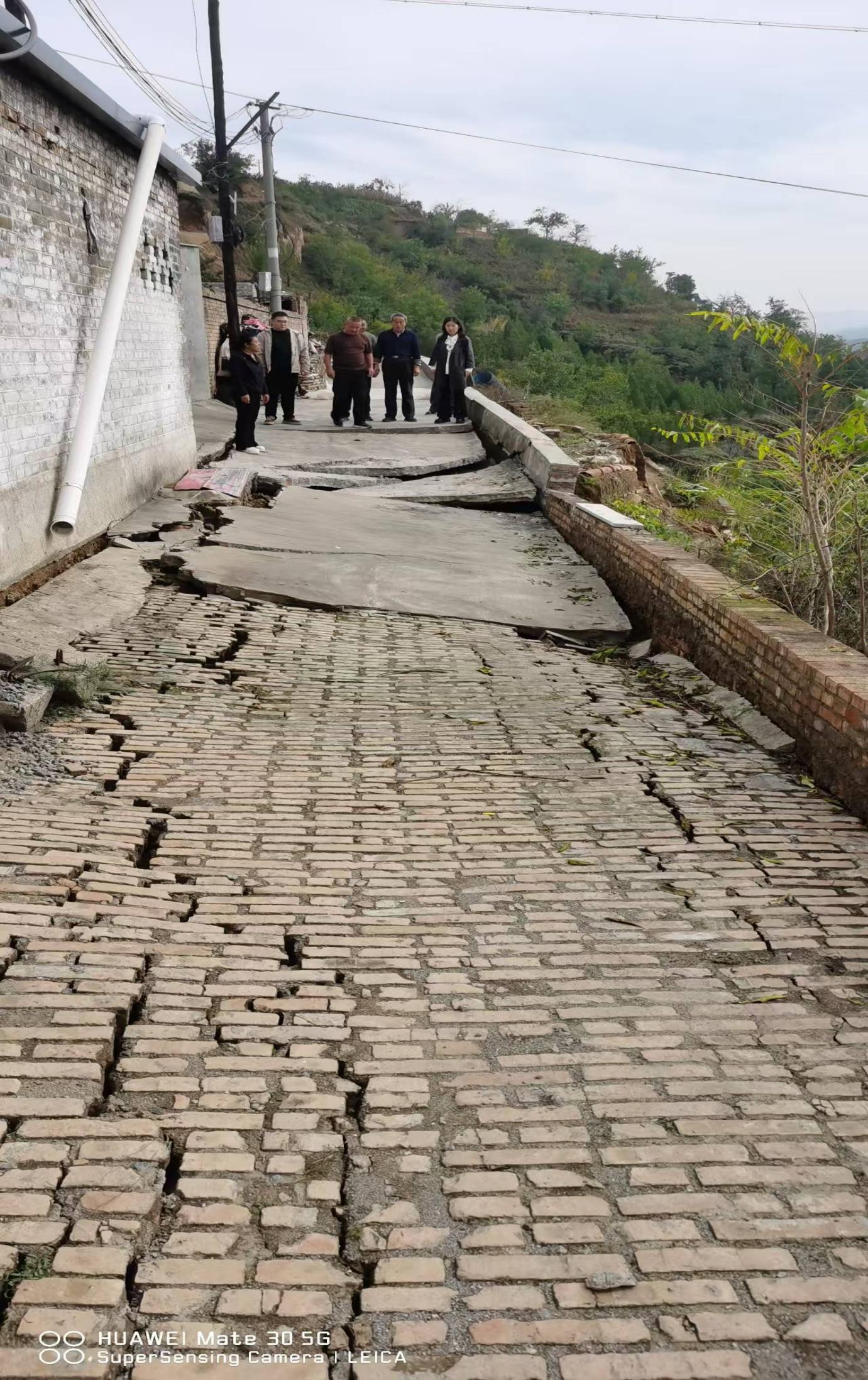 4.王家庄村高家垣自然村道路及住房隐患:村内主干道出现长约8米、宽约1.2米的塌陷坑,路面沉降导致车辆行人无法正常通行;塌陷区域周边5户村民住房地基出现下沉迹象,住房结构安全受直接威胁。
