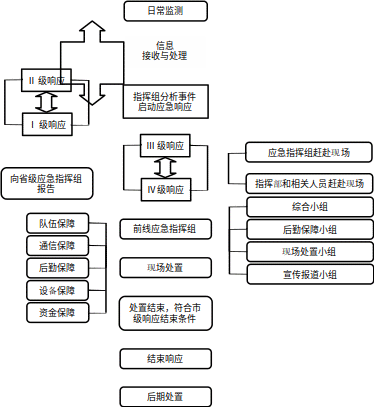 符合Ⅱ、I级响应条件时,市级应急指挥组立即向省级应急指挥组报告,具备Ⅱ级响应时,可启动Ⅱ级响应,同时市级应急指挥部迅速与当地公安部门联络立即通知与事发地相邻的所辖县(市、区),做好随时跨区域增援准备,各级应急执法队随时待命。