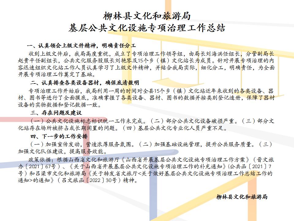 图解:文化和旅游局关于基层公共文化设施专项治理工作总结的解读