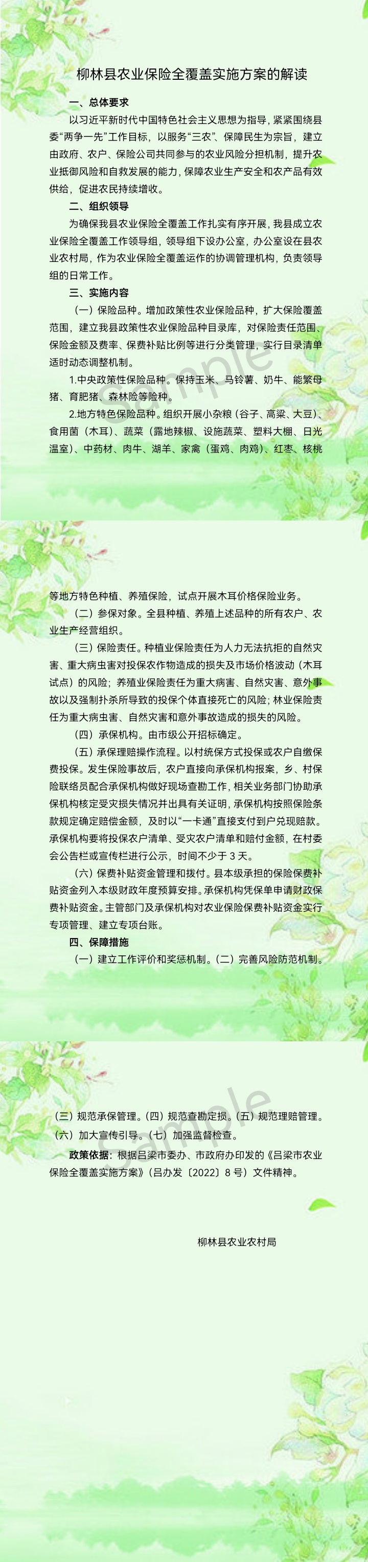 图解:柳林县人民政府办公室关于印发柳林县农业保险全覆盖实施方案的解读