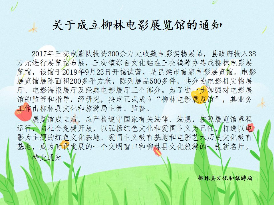 关于成立柳林电影展览馆的通知