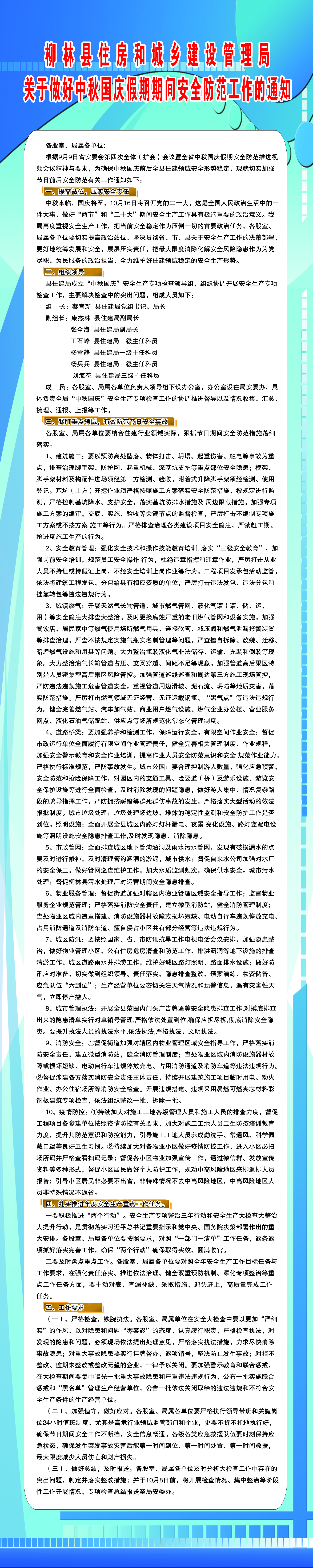 柳林县住房和城乡建设管理局关于做好中秋国庆假期期间安全防范工作的通知