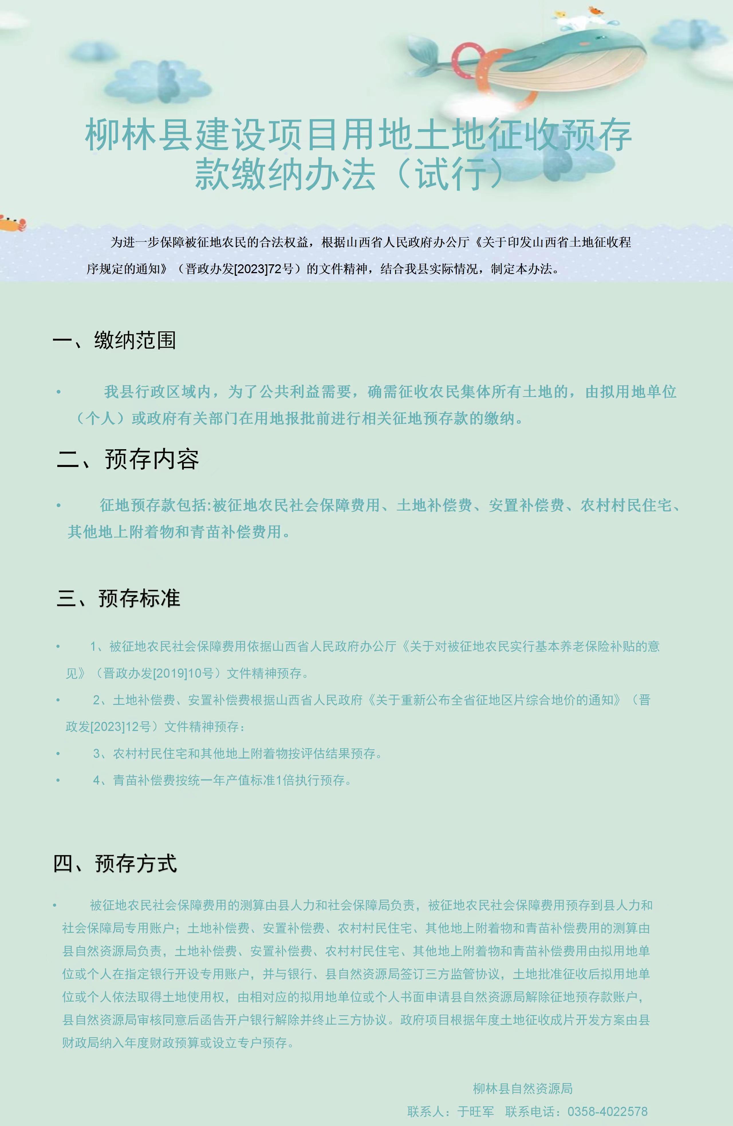 【图解】柳林县建设项目用地土地征收预存款缴纳办法(试行)的解读