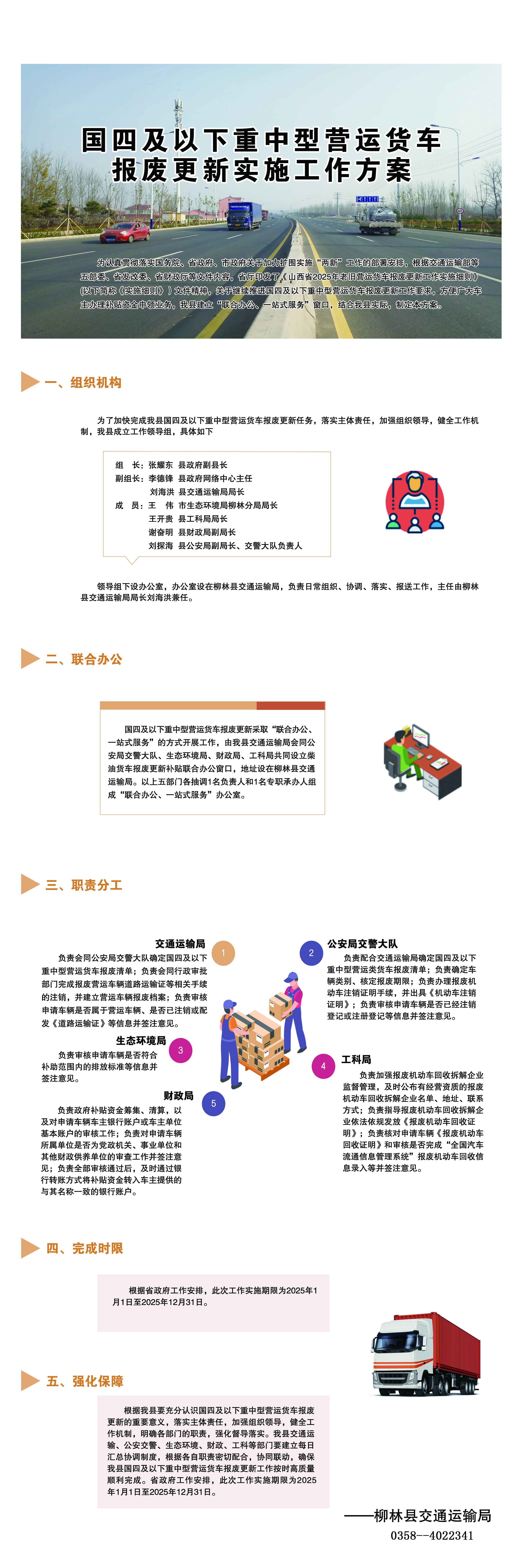 柳林县人民政府办公室关于印发国四及以下重中型营运货车报废更新实施工作方案的通知