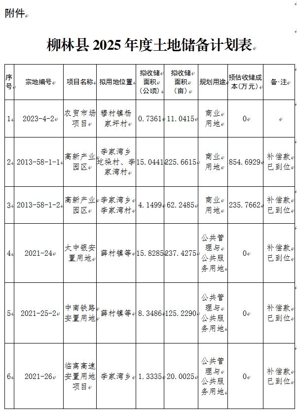 《柳林县2025年度土地储备计划(第一批)》经县人民政府批准,现予印发,请认真执行。