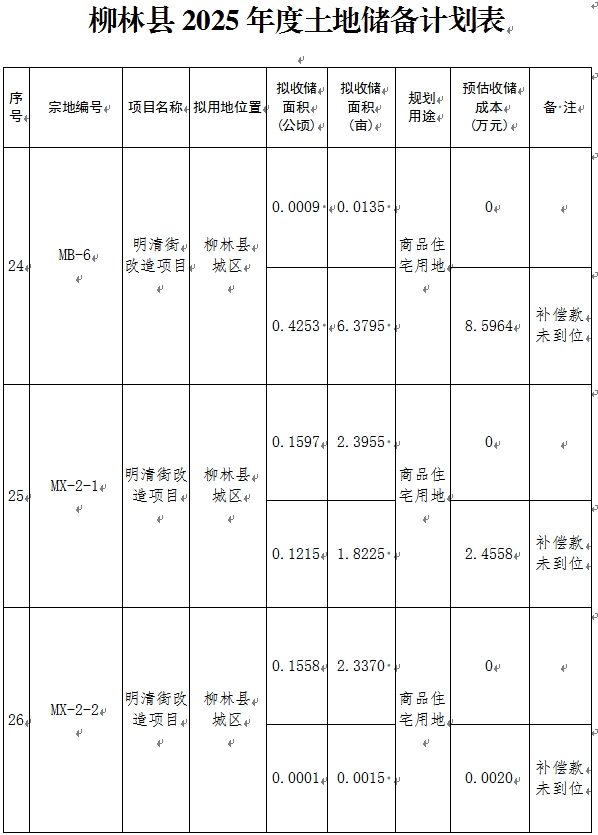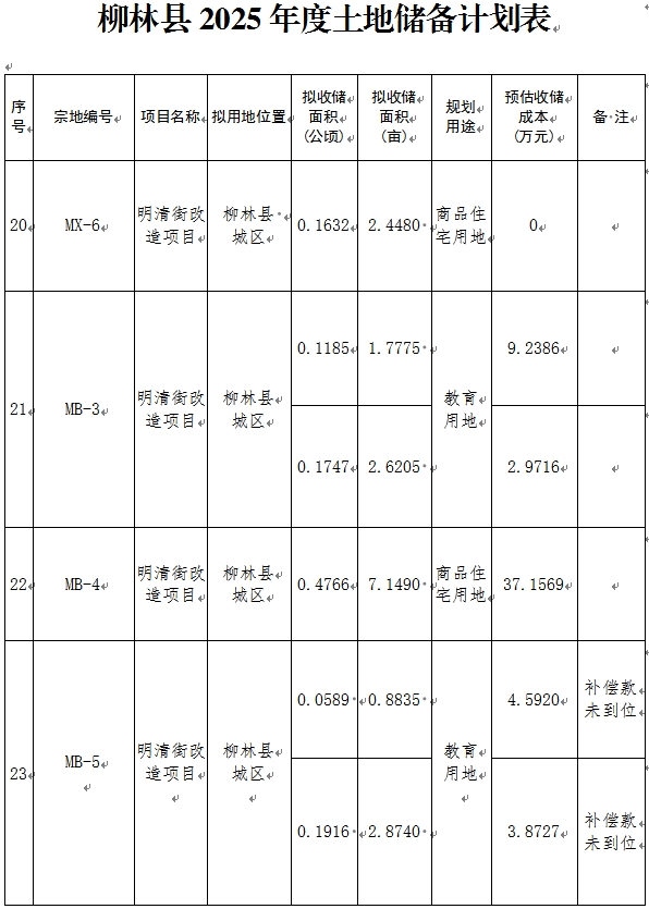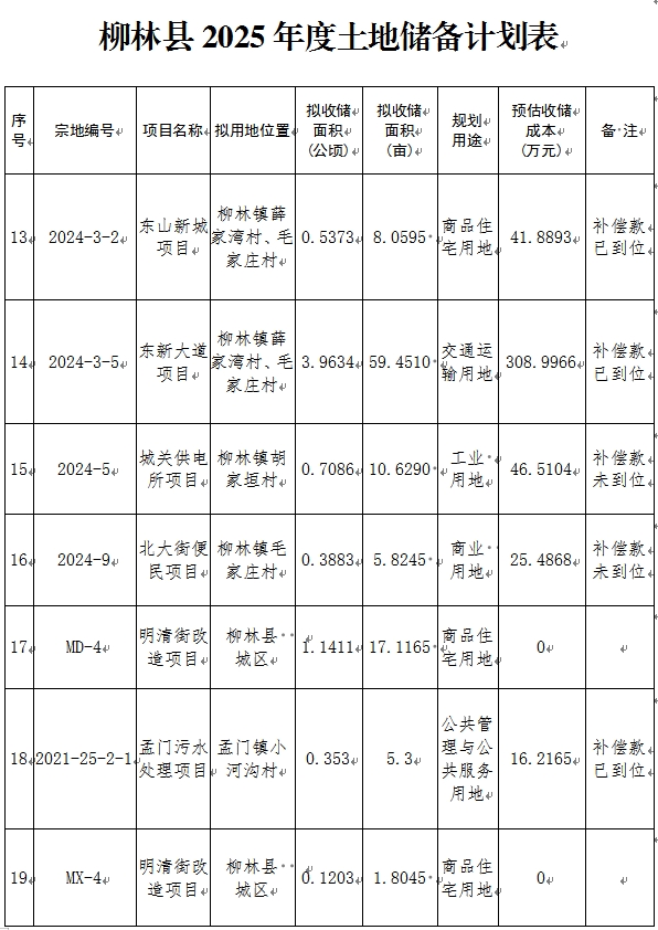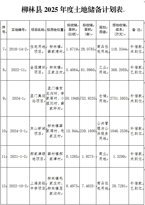 2025年计划储备总量中,储备地块位于柳林县柳林镇、薛村镇、孟门镇、李家湾乡、穆村镇。
