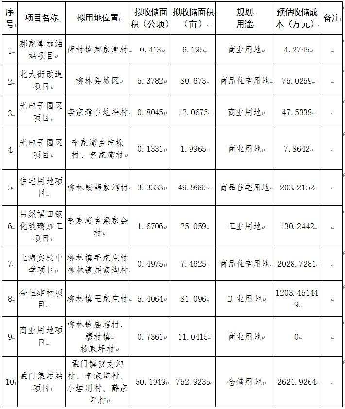 柳林县人民政府关于印发柳林县2024年度土地储备计划