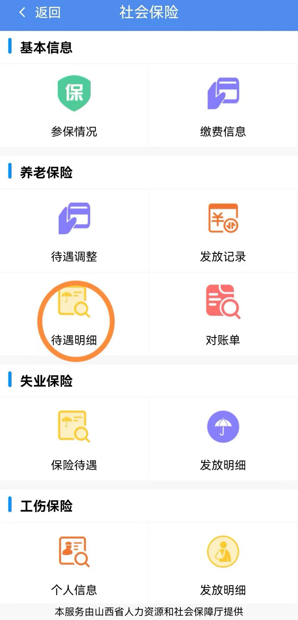 “待遇明细”,即可进行养老金查询。