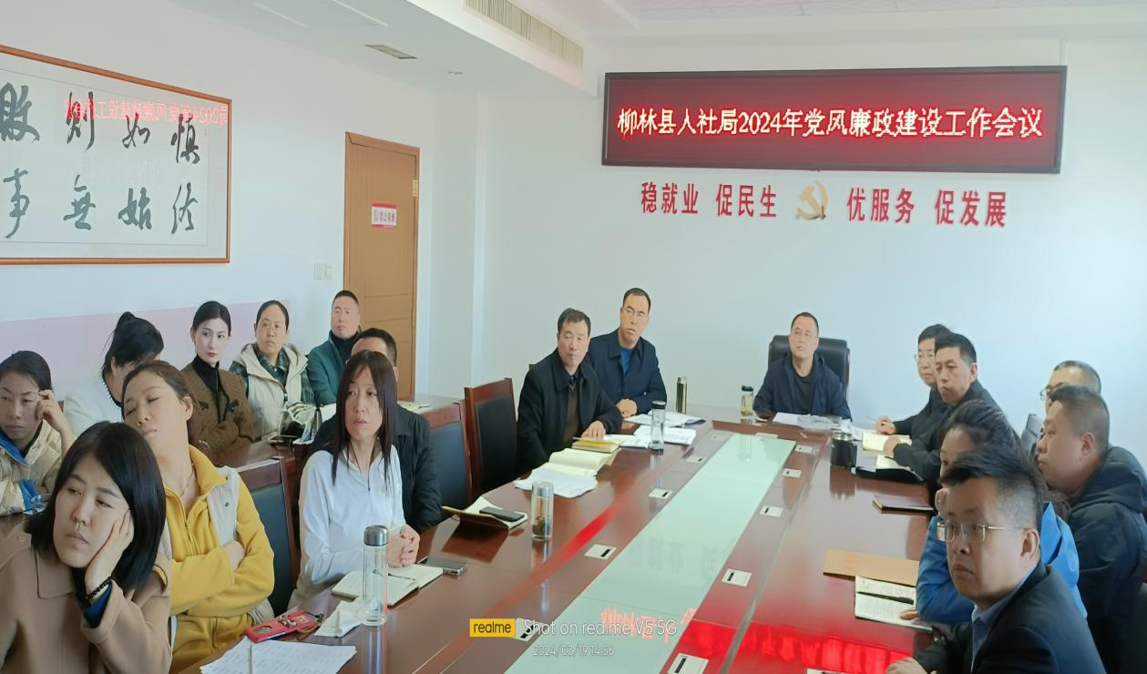 3月19日下午,柳林县人社局召开了2024年度党风廉政建设会,会议由党组书记、局长王昶主持,局机关全体党员干部参加。