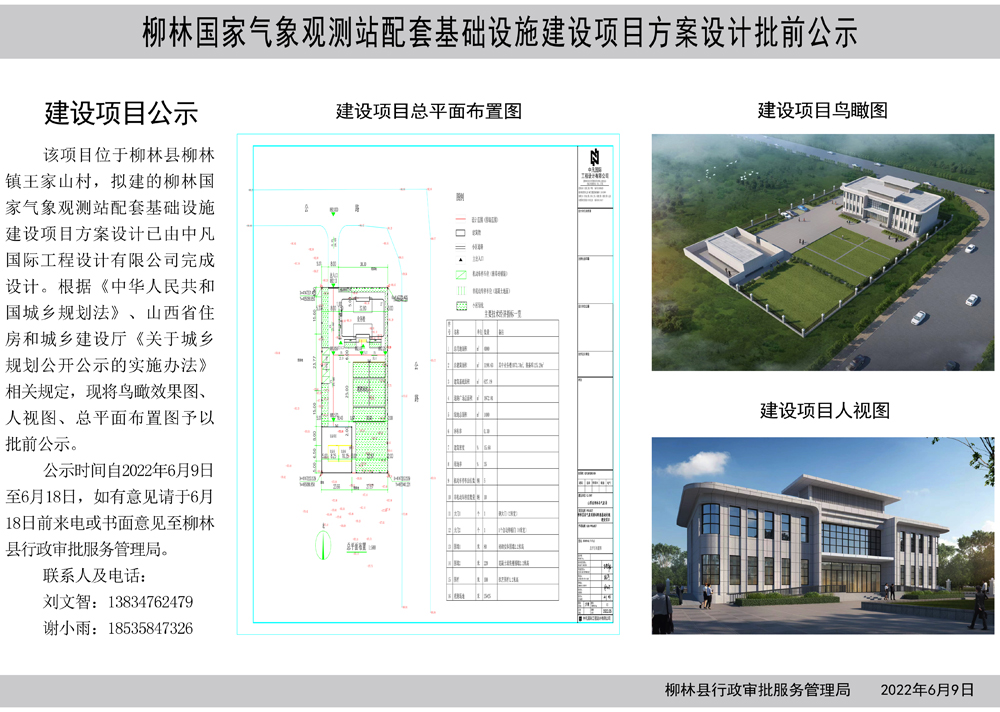 为保证建筑方案设计的公开、公正、透明,强化公众参与,现对建筑方案设计进行审批前公示,公示期自2022年6月9日至6月18日,共10日。公示期内,如有意见和建议,请以书面形式于6月18日前向柳林县行政审批服务管理局反映(需注明姓名、身份证号码、工作单位、联系电话等)。逾期未提出的,视为无意见。公示期满,将根据公示情况依法按程序审批。