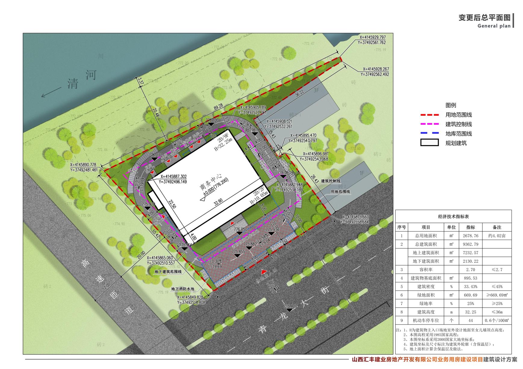 本项目规划总用地面积为2678.76㎡,折合4.02亩。总建筑面积9362.79㎡,其中地上建筑面积7232.57㎡,地下建筑面积2130.22㎡。本项目主要新建1栋地上9层,地下2层的商务中心;以及室外市政配套工程、绿化工程等。另外包含安装工程、装饰工程、配套设施设备等。根据《中华人民共和国城乡规划法》、山西省住房和城乡建设厅《关于城乡规划公开公示的实施办法》相关规定,现将区位图、总平面图予以批前公示。